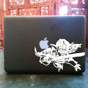 Guide of Star Wars Yoda macbook pro laptop vinyl decal stickerCut from high quality vinyl that has an outdoor life expectancy of 5-8 years. The decal will be one color, the background will be whatever you are putting the decal on- this is a single color decal. Each decal will come on clean transparent transfer tape (not paper)for very easy application. Can be applied on outside of any smooth, flat, clean and dry surface. Great on laptops, glass, car windows, use your imagination. Instructions for application will also be provided.